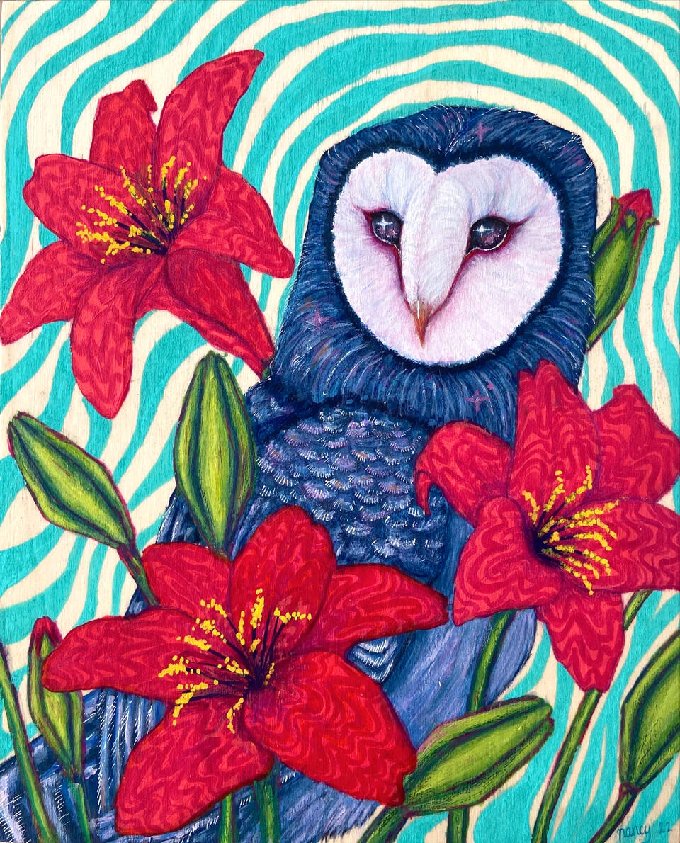 Nancy Correia is a Brampton-based, multidisciplinary artist working in illustration, drawing, painting, ceramic and installation to explore narratives within the Marathi diaspora. Correia delves into concepts of diasporic identity such as intersectional senses of self that surge through broader, globalized contexts.Her practice practice began as a child loving bright colours and examining nature. Then she expanded into exploring thresholds, simultaneous truths, and childhood nostalgia. Her work surrounds navigating her sense of self in conversation with her relationship to the body, nature, and discovering the sacred.Examining personal and collective identity, Correia endeavours to understand and depict the complexity of labelled existence while navigating her own identity as a person of colour in the West, striving to discover how one transcends liminality to inhabit third spaces. She is devoted to sharing her practice of creating intentional, identity-rooted, and emotionally resonant works, seeking to touch hearts and cultivate love in community.