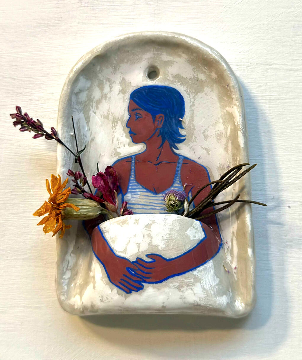 Nancy Correia is a multidisciplinary artist working in illustration, drawing, painting, ceramic and installation to explore narratives within the Marathi diaspora and concepts of identity such as intersectional senses of self that surge through broader, globalized contexts. Her work surrounds navigating diasporic identity in conversation with her relationship to the body, nature, and discovering the sacred.Correia creates unique pieces centered on her identity and interests. She endeavor to share her practice that examines personal and collective identity, seeking to touch hearts and cultivate love in community.