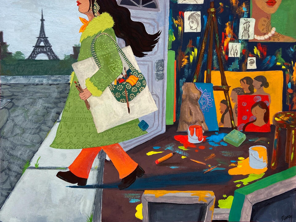 Nancy Correia is a Brampton-based, multidisciplinary artist working in illustration, drawing, painting, ceramic and installation to explore narratives within the Marathi diaspora. Correia delves into concepts of diasporic identity such as intersectional senses of self that surge through broader, globalized contexts.Her practice practice began as a child loving bright colours and examining nature. Then she expanded into exploring thresholds, simultaneous truths, and childhood nostalgia. Her work surrounds navigating her sense of self in conversation with her relationship to the body, nature, and discovering the sacred.Examining personal and collective identity, Correia endeavours to understand and depict the complexity of labelled existence while navigating her own identity as a person of colour in the West, striving to discover how one transcends liminality to inhabit third spaces. She is devoted to sharing her practice of creating intentional, identity-rooted, and emotionally resonant works, seeking to touch hearts and cultivate love in community.